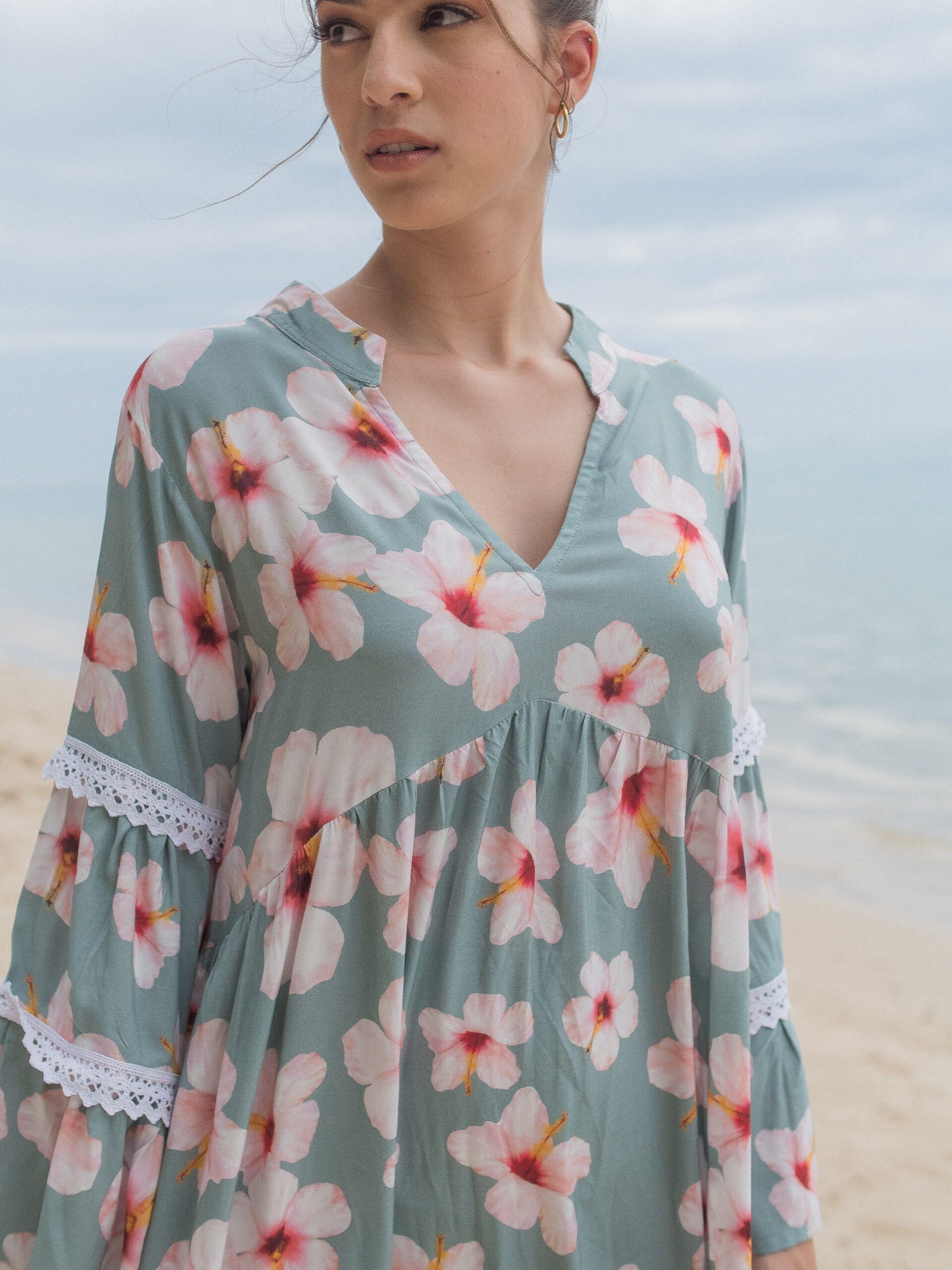 Embrace grace and elegance with the Lady Maxi dress. It features long butterfly sleeves adorned with delicate lace, and a flattering V-neck design. Experience maximum comfort and style with this beautiful dress.